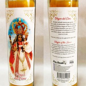 Veladora Religiosa Holy Candle 350 g. Virgen del Cisne color blanco, amarillo, azul, rojo, verde, naranja, lila, rosado.