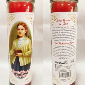 Veladora Religiosa Holy Candle 350 g. Santa Narcisa de Jesús color blanco, amarillo, azul, rojo, verde, naranja, lila, rosado.