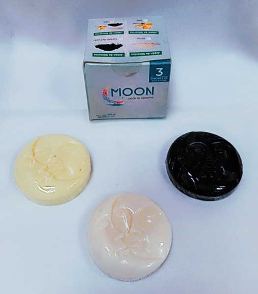 Jabón de Glicerina Moon Caja X3 Unidades de 55 g. c/u Mix Carbón Activado, Miel, Arroz
